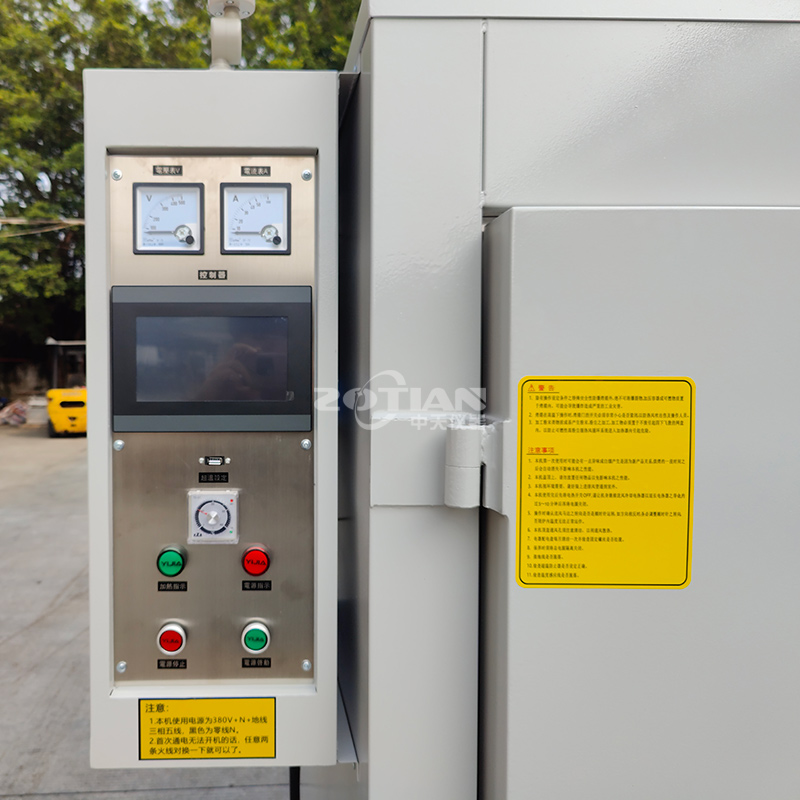 380V,三相四線制,加熱功率 9KW,配控制電箱于烤箱頂部,采用優怡觸摸屏控制器,配有 PV 和 SV 數字顯示窗口。提供 USB 接口:可記錄運行中溫度值,可下載各種測試參數信息。采用SSR 固態繼電器控制加熱器,顛覆傳統過零觸發時帶來的電流瞬間沖擊大、控溫波動大等影響,配合性價比極高的 DC24V 輸出型控制器,可使輸出電壓平穩線性變化,控溫效果更穩定,性能更穩定,使溫度更加精準,溫度由室溫+10℃-400℃可調。功能有 PID 自整定微積分控制、使溫度更加精準,控溫精度±0.5℃,內部溫度均勻性±3℃(空載測試)。自動恒溫、自動計時(配有高精度數顯計時器可調 99 小時 99 分鐘)溫度到后定時報警斷加熱、超溫報警斷加熱、電源缺相相序保護等功能,及其它正牌電器控。